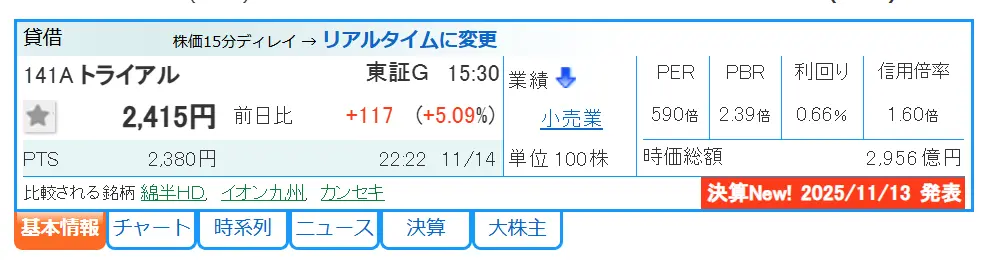 トライアルGOやトライアル西友など、首都圏での攻勢で業績がどこまで伸びていくのか楽しみにしています。今後の成長に期待です。