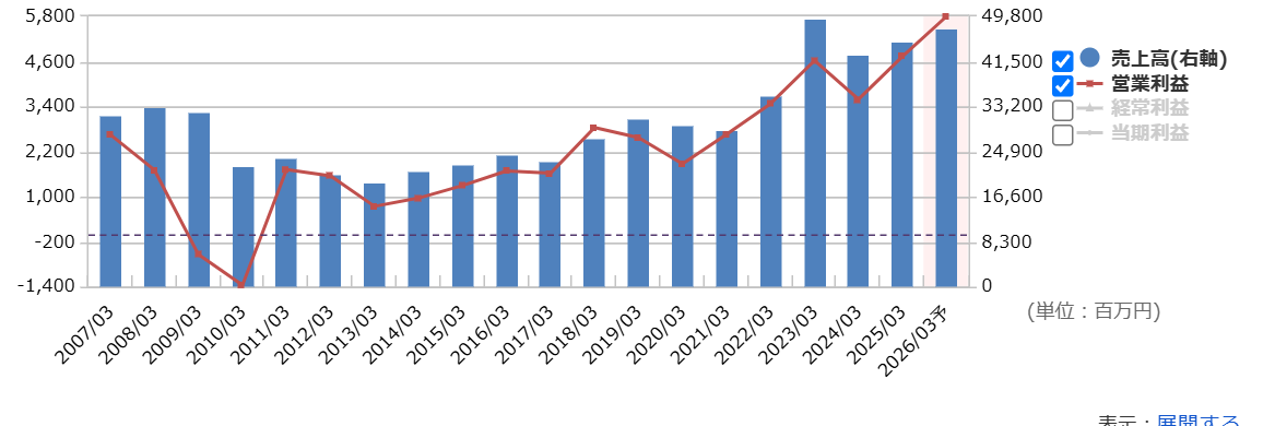 自己資本比率は60.8%と財務は健全です。通期の業績推移を見ると、ここしばらくは概ね右肩上がりで成長しています。