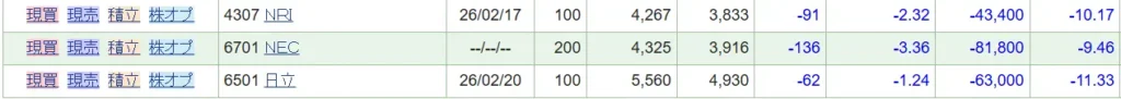 今回の銘柄は、日立、NEC、NRIです。日立はちょっと違うのですがNRIとNECについてはアンソロピックショックで下落が止まらない銘柄です。